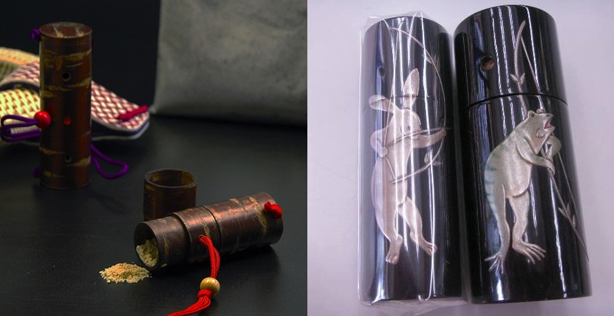 Cherry Bark powder case (left), Lacquerware powder case (right)